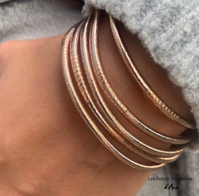 ⋄ Ce sont des bracelets souples qui sont gravés d’un mantra qui porte chance