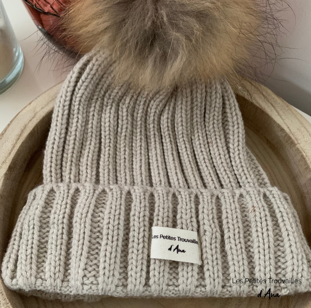 ⋄ Bonnet Beige avec pompon